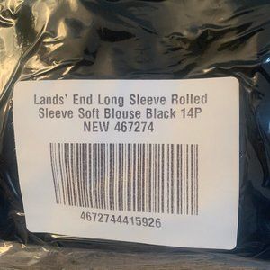 NWT (NEW IN BAG) LANDS' END LONG SLEEVE ROLLED TAB SLEEVE SOFT BLOUSE BLACK SIZE 14P (PETITE).
