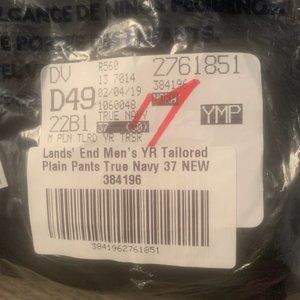 NWT (NEW IN BAG) LANDS' END MEN'S YEAR'ROUNDER TAILORED FIT PLAIN FRONT PANTS TRUE NAVY SIZES 37X30 (SIZE 37 & INSEAM 30") AND 37X31 (SIZE 37 & 31" INSEAM).