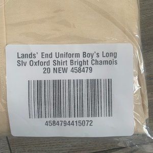 NWT LANDS' END UNIFORM BOY'S LONG SLEEVE OXFORD SHIRT BRIGHT CHAMOIS 20