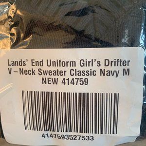 NWT (NEW IN BAG) LANDS' END UNIFORM GIRL'S DRIFTER V-NECK SWEATER CLASSIC NAVY SIZE MEDIUM (10-12).