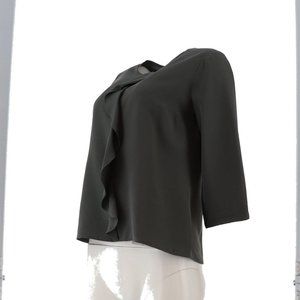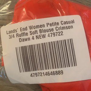 NWT (NEW IN BAG) LAND'S END WOMEN'S CASUAL 3/4 SLEEVE RUFFLE SOFT BLOUSE COLOR CRIMSON DAWN SIZE 4P (PETITE).