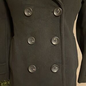 NWT LAND’S END women’s black double breasted Wool Cashmere Pea Coat / jacket 2P