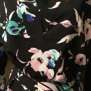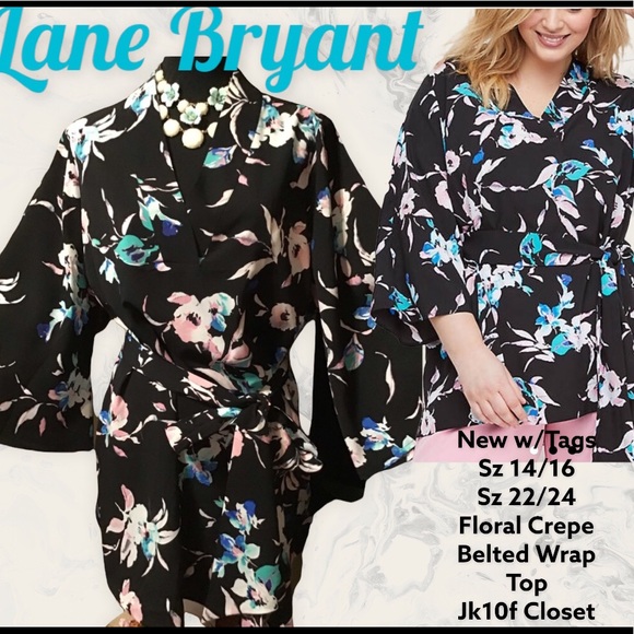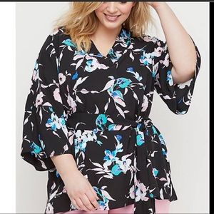 🌺Lane Bryant Florals on Black Background Belted Tunic Top 32”Length