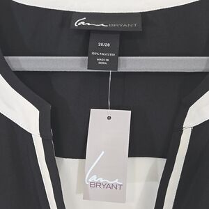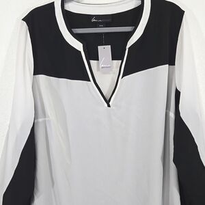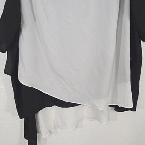 *NWT* LANE BRYANT Black/White Layered Flowy Classic Tunic Top, size 26/28. Sleeves can be rolled and buttoned up. Lightweight material. Asymmetrical hem. Lovely, classic top. Brand new with tag.