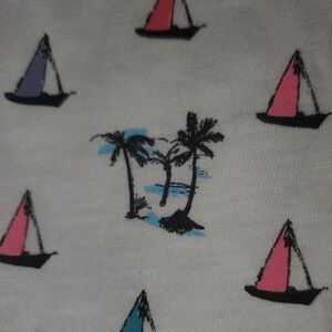 Coming in a classic, nautical print of sailboats and palm trees on white with a combination of pink & blue, this tanktop definitely makes a statement.