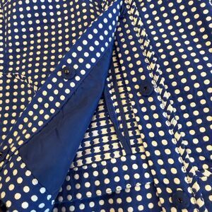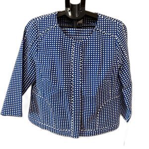 Elevate your professional wardrobe with this sophisticated 2-piece suit set. Featuring a timeless blue and white polka dot pattern with intricate stitching detail, this set offers a classic "Jackie O" vintage-inspired aesthetic perfect for the office, weddings, or cocktail events.