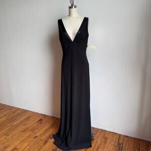 NWT LAUNDRY BY SHELLI SEGAL Timeless Black Deep-V Floor Length Maxi Dress