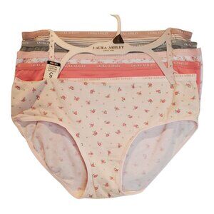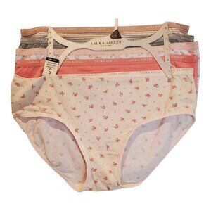 NWT LAURA ASHLEY SZ L 5 Pack Cotton Spandex Briefs Panties Underwear Pink Gray Beige White