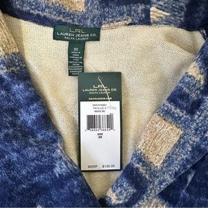 NWT LAUREN RALPH LAUREN SW Tribal Buckle Close Jacket Blue Beige Cotton 3x Lined