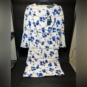 NWT LAUREN RALPH LAUREN sheath dress floral navy blue 4