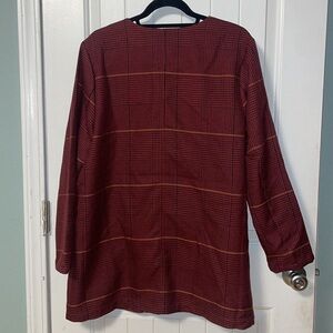 LAURIE FELT Burgundy Plaid Zoe Wrap Coat Blazer , Size large.