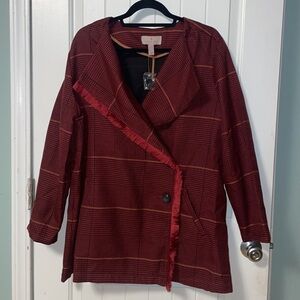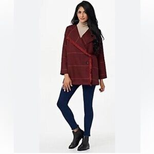 NWT LAURIE FELT Burgundy Plaid Zoe Wrap Coat Blazer Size Large