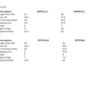 Length from center back: XS/S 34-1/2"; M/L 35-1/2"; XL/1X 36-1/2"; 2X/3X 37-1/2"