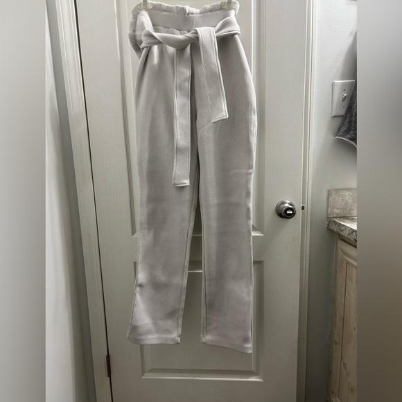 NWT L’Academie Chic White High-Waisted Ribbed Tie Pants Medium