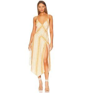 NWT L'Academie Manon Midi Dress in Chai Stripe