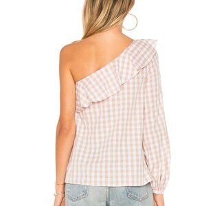 NWT L'Academie The Asymmetrical Blouse in taupe gingham size small