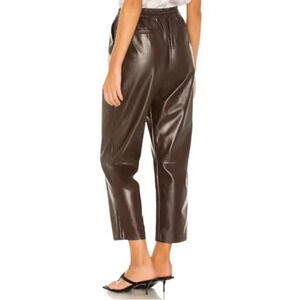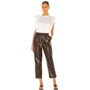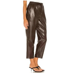 NWT L'Academie The Naya Faux Vegan Leather Chocolate Brown Elastic Pants XS