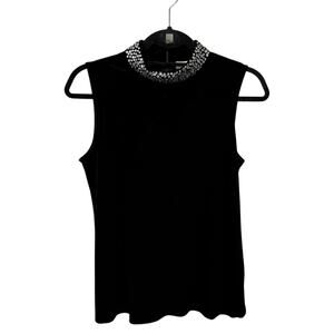 NWT L’Agence Black Madelyn Crystal-Embellished Mock Neck Sleeveless Top Small