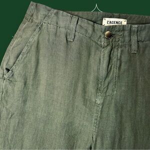 NWT L’Agence Cropped Linen Trousers in Olive Green “Basil” Size 25