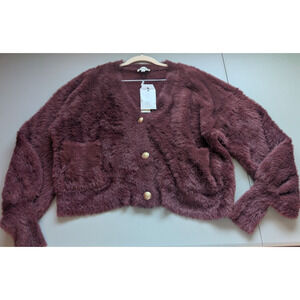 NWT L'Agence Harriet Fuzzy Knit Blouson Sleeve Cardigan Size XXL Burgundy #3D511