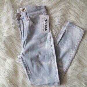 NWT L'Agence Margot Light Blue White Mid Rise Denim Skinny Jeans Size 25