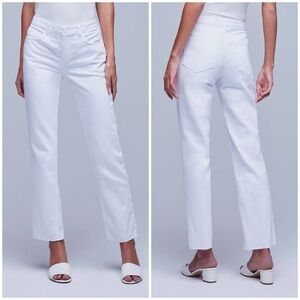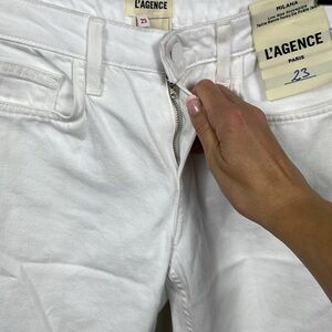 NWT L’Agence Milana Low Rise Stovepipe Jeans White Blanc Raw Hem Sz 23