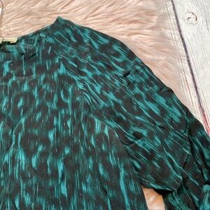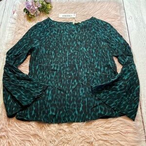 New with tags L'Agence Silk Watercolor Teal Dylan Bell Sleeve Blouse