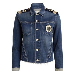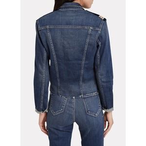 NWT L’Agence Womens Janelle Slim Crest Denim Jacket Size Small Frayed Pockets.
