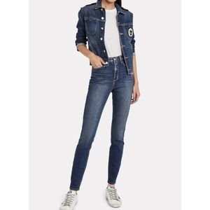 NWT L’Agence Womens Janelle Slim Crest Denim Jacket Size Small Frayed Pockets