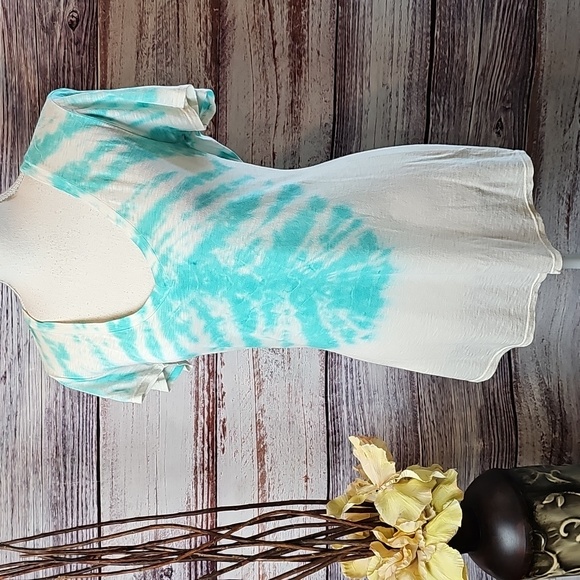 NWT LAmade TEAL TIE DYE V NECK CAP SLEEVED PULLOVER TEE