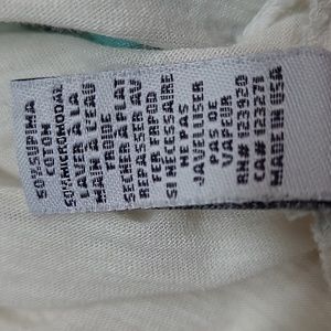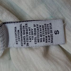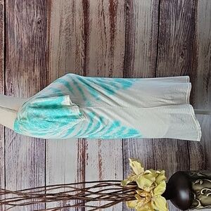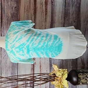 LAmade teal and white, very thin, lightweight, deep V neck, cap sleeve, hi-lo hem, tie dye boyfriend tee.
