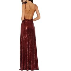 This gown features a sultry open back, a deep V neckline, and an elegant floor-length silhouette that shimmers beautifully with every step. The rich burgundy sequins create a luxe, light-catching effect perfect for holiday parties, weddings, galas, or New Year’s Eve celebrations.