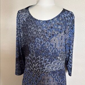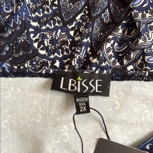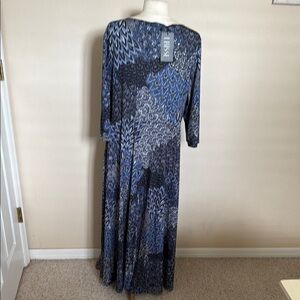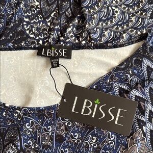 New with Tag - LBISSE floor length dress with 3/4 sleeves. (sz 2X). The dress is polyester and machine washable. The colors in the dress are blue, black & white. Please see all photos.
