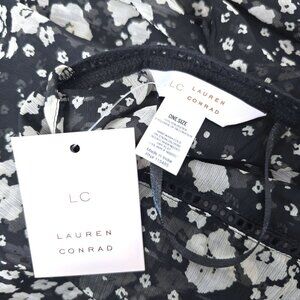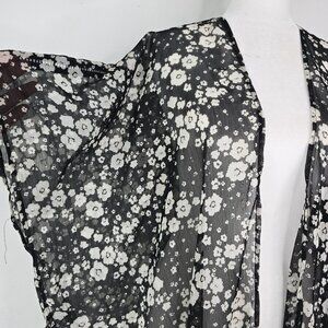 NWT LC LAuren COnrad Black White Floral Open Front Flowy BOho KImono Cardigan OS