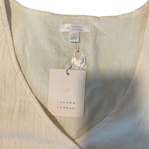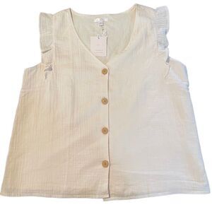 NWT- LC Lauren Conrad- Cream Organic Ruffle Button Down Tank Top, Size Large