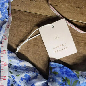 NWT LC Lauren Conrad Floral Print Pleated Empire Waist Chiffon V-Neck Midi Dress