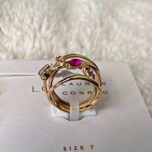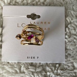 NWT LC Lauren Conrad Rose Gold Tone Clear Simulated Stones & Wavy Bands Ring Set