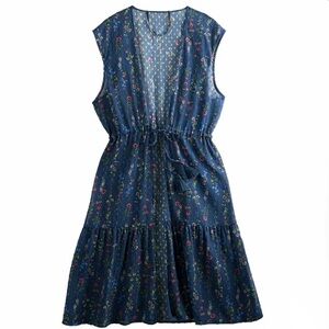 NWT LC Lauren Conrad Sheer Linear Botanical Long Tie Front Vest