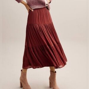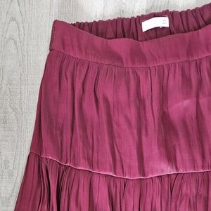 LC Lauren Conrad tiered midi skirt in rich burgundy. The flowy fabric feels like silk and has a beautiful sheen. Perfect for versatile styling.