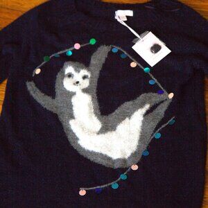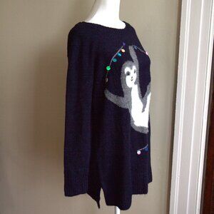 NWT LC Lauren Conrad Sparkly Navy Holiday Sweater with Festive Sloth Design