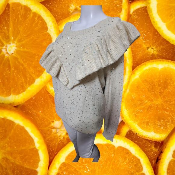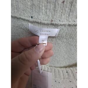 NWT LC Lauren Conrad Women Ruffle Shoulder Prancer Sparkle Sequin Sweater Size M