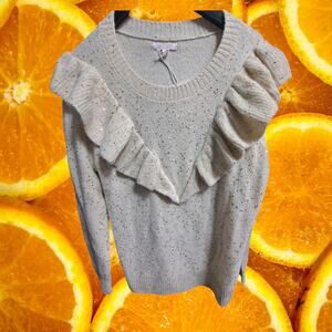 NWT LC Lauren Conrad Women's Ruffle Shoulder Prancer Sparkle Sequin Sweater