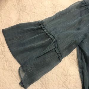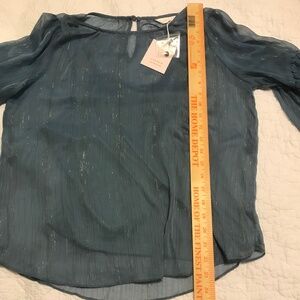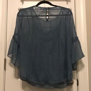 NWT LC Lauren Conrad blue flutter sleeve blouse with silver metallic thread (S)