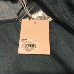 NWT LC Lauren Conrad blue flutter sleeve blouse embellished with silver metallic thread. Little ruffles on the sleeves. Transparent with a built-in tank. Very light and airy looking for spring and summer, though colors could work all year round. Buttons closure at back of collar, extra button included. Measurements and materials in pics. Size S. Machine wash in cold (inside out) and tumble dry low. Beautiful for a date night, casual day out shopping, but could also work well as office attire. It will look equally fabulous with a jeans jacket or black blazer!