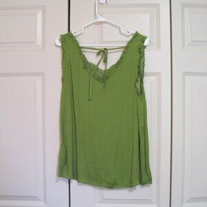 New with tags LC Lauren Conrad green V-neck tank top with ruffle and back tie detail size Large. Material: 100% polyester.