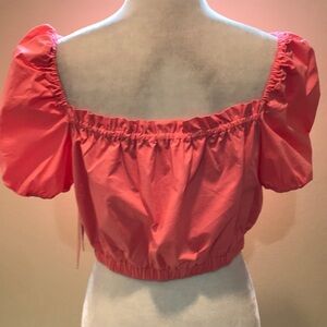 NWT LDT Coral Square Neck Short Puff Sleeve Smocked 97% Cotton Crop Top