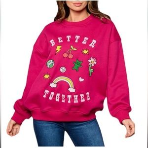 NWT LE LIS NEW EMBROIDERED SWEATSHIRT Raspberry Sz L Oversized Bloomingdales