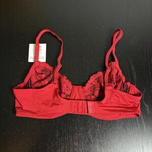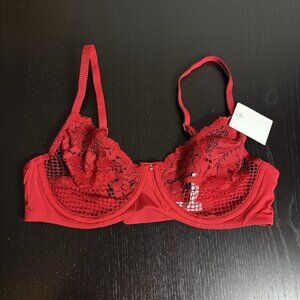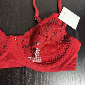 NWT LE MYSTERE Size 32C Lace Allure Unlined Underwire Bra in Ruby Red