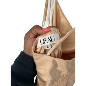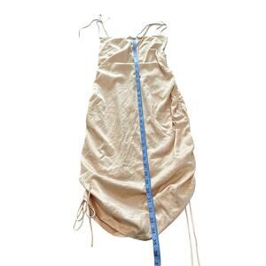 New with Tags LEAU Cabo Gold Champagne Satin Ruched Bodycon Dress.