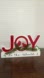 There are individual round warm white LED lights placed throughout the red JOY that illiuminate with the on/off switch at the base. A perfect addition to your holiday decor.